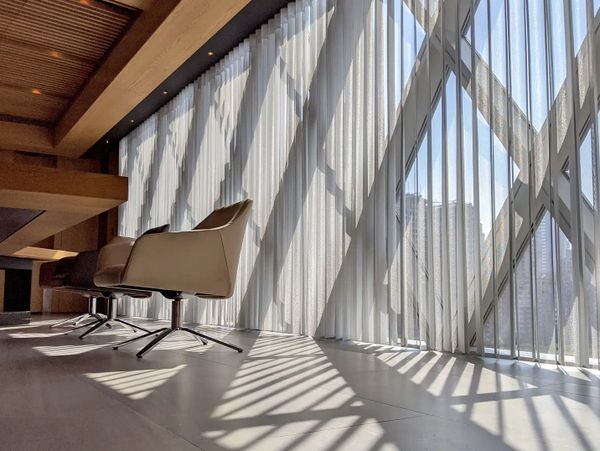 A soft interplay of light, colors, and shadows elevates decor and everyday privacy control to a new level of elegance and softness. Only PerfectSheet combines a banded, layered shade with a sheer fabric vane shade for a sleek and modern effect. Choose from room darkening or light filtering. Featuring 100% woven construction, three layers of fabrics are woven together with advanced technology, creating unique ambient light effects.