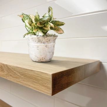 Floating shelves made of high-quality solid wood. Each shelf can hold up to 35 pounds per stud. With a smooth and clean look, these shelves are as beautiful as they are useful, robust, and elegant. Available in White Oak, Walnut, Ash, Maple, Cherry, Alder, and Reclaimed Wood.
